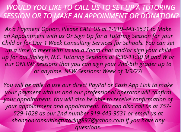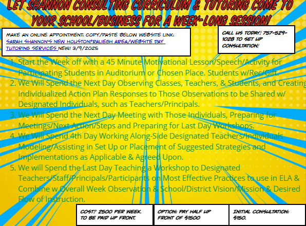Email: shannonconsultingcurriculumtutoring897@yahoo.com